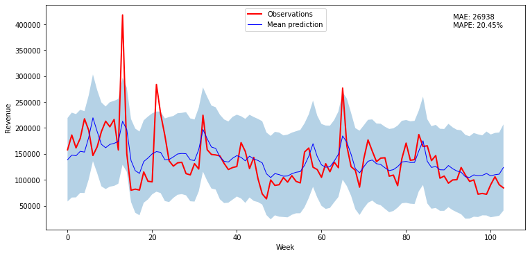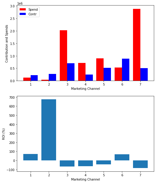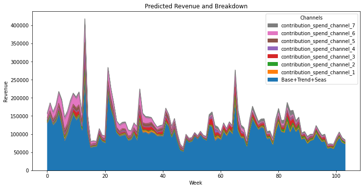 Consider a company, which runs an online shop, and advertises on seven different paid channels (TV, radio, billboards, Google Ads, etc). Based on weekly data on weekly advertisement costs and revenue available for 2 years, the company would like to understand how effective different channels are. One has to take into account that marketing actions have usually not an immediate effect, ads and campaigns in one week influence usually sales in the coming weeks. So different channels can be expected to target different audiences at different times and for different durations, and hence will have lagged effects on revenue.