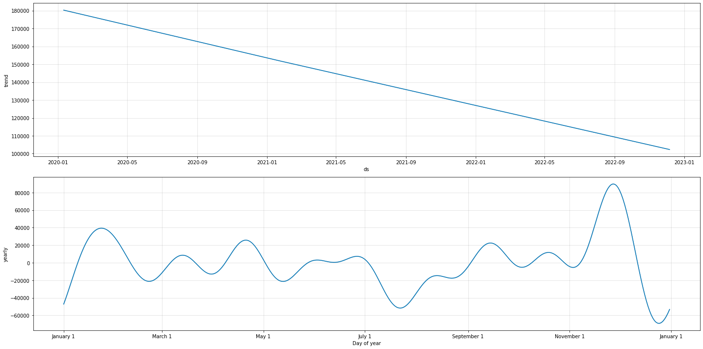 prophet_columns = [col for col in prophet_predict.columns if (col.endswith("upper") ==False) & (col.endswith("lower") ==False)]events_numeric = prophet_predict[prophet_columns].filter(like ="events_").sum(axis =1)final_data = data_wdates.copy()final_data["trend"] = prophet_predict["trend"]final_data["season"] = prophet_predict["yearly"]